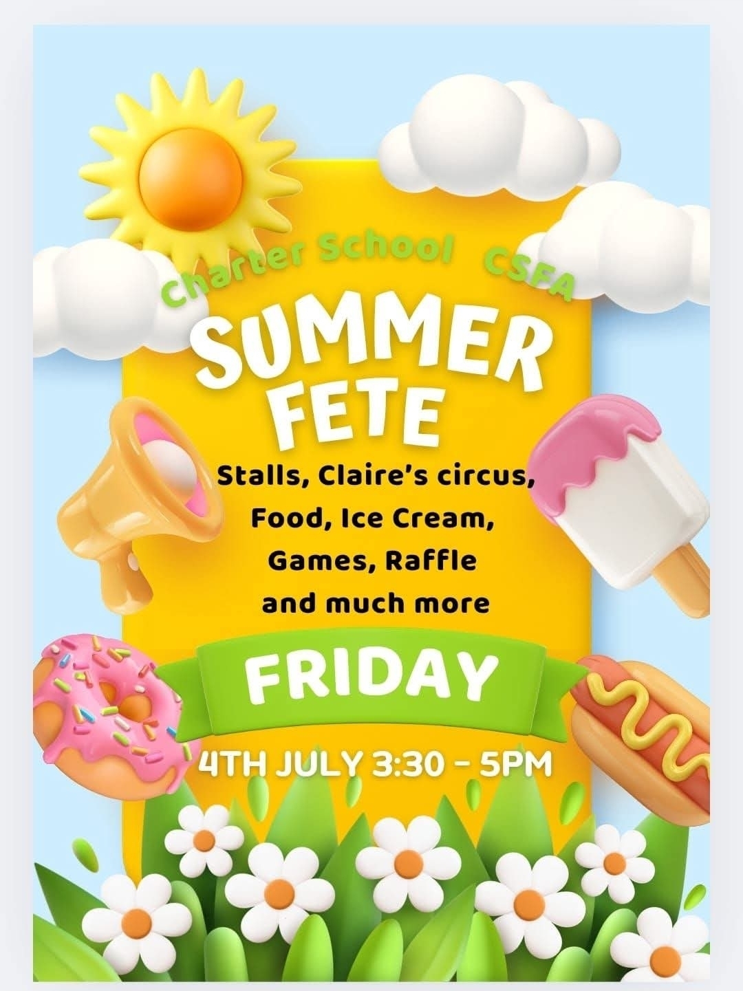 ![]() Charter School Summer FeteFriday 4th July 3.30pm - 5pm |